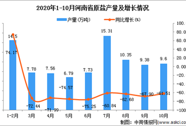 中商情报网讯:据中商产业研究院数据库显示,2020年10月河南省原盐产量为9.6万吨,同比下降61.51%。 数据来源:中商产业研究院数据库 2020年10月河南省原盐产量增长情况...【详情】