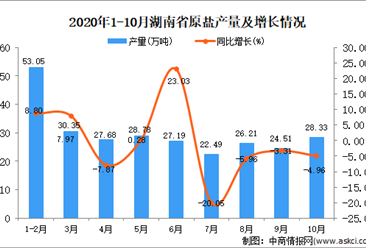 中商情报网讯:据中商产业研究院数据库显示,2020年10月湖南省原盐产量为28.33万吨,同比下降4.96%。 数据来源:中商产业研究院数据库 2020年10月湖南省原盐产量及增长...【详情】