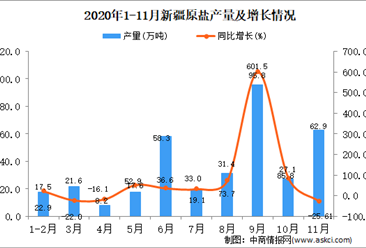中商情报网讯:据中商产业研究院数据库显示,2020年11月新疆原盐产量为62.9万吨,同比下降25.61%。 数据来源:中商产业研究院数据库 2020年11月新疆原盐产量及增长情况 ...【详情】
