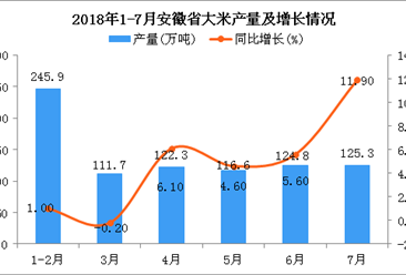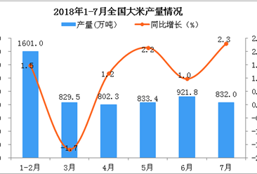 中商情报网讯:据中商产业研究院数据库显示,2018年3-4月全国大米产量下降,2018年4月全国大米产量为802.3万吨,同比增长1.2%。2018年5-6月全国大米产量增长,2018年7月全...【详情】