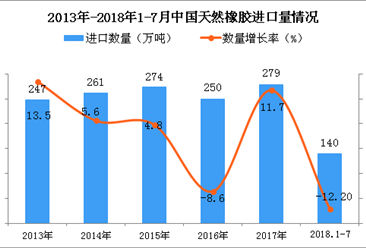 中商情报网讯:据中商产业研究院数据库显示,2013年-2015年中国天然橡胶进口量有小幅度增长,涨幅在5%左右;2017年中国天然橡胶进口量为279万吨,同比增长11.7%。2018年1-...【详情】