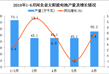 中商情报网讯:据中商产业研究院数据库显示,2018年3-5月河北省太阳能电池产量波动不大,2018年6月河北省太阳能电池产量明显增长;2018年6月河北省太阳能电池产量为55.2万...【详情】