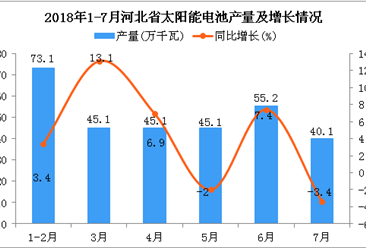 中商情报网讯:据中商产业研究院数据库显示,2018年1-5月河北省太阳能电池总体呈上升趋势,2018年5月河北省太阳能电池产量为45.1万千瓦,同比下降2%。2018年5月河北省太阳...【详情】