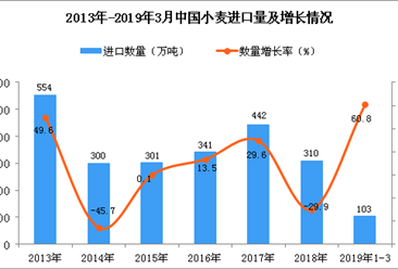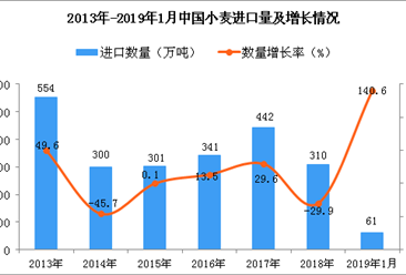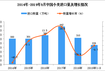 中商情报网讯:据中商产业研究院数据库显示,2014-2017年中国小麦进口量逐渐增长,2018年中国小麦进口量下降;2019年1-3季度中国小麦进口量为226万吨,同比下降9.7%。 ...【详情】