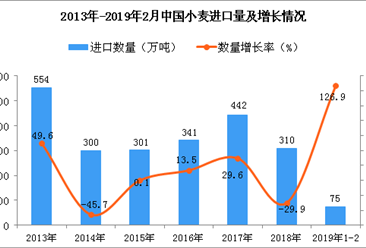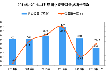 中商情报网讯:据中商产业研究院数据库显示,2019年1-2季度中国小麦进口量有所下降,2019年1-7月中国小麦进口量为198万吨,同比下降4.9%。 数据来源:中商产业研究院数...【详情】