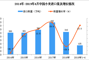 中商情报网讯:据中商产业研究院数据库显示,2014年-2017年中国小麦的进口数量呈上升趋势,2017年中国小麦进口量为442万吨,同比增长29.6%;2018年中国小麦进口量下降,20...【详情】