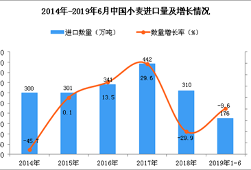 中商情报网讯:据中商产业研究院数据库显示,2019年1-2季度中国小麦进口量波动幅度不大,2019年1-6月中国小麦进口量为176万吨,同比下降9.6%。 数据来源:中商产业研究...【详情】