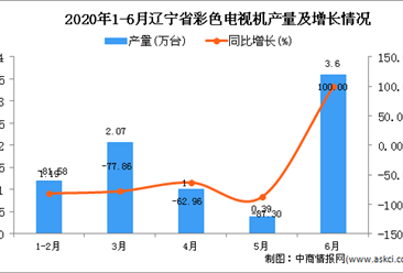 中商情报网讯:据中商产业研究院数据库显示,2020年6月辽宁省彩色电视机产量增长,2020年6月辽宁省彩色电视机产量3.6万台,同比增长100%。2020年6月辽宁省彩色电视机产量...【详情】