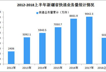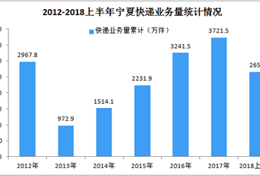2018年上半年,快递保持稳定运行,快递业务量、快递业务收入双双增长。据数据显示,2012年宁夏快递业务总量为2967.8万件,到2017年上升至3721.5万件。2017年同比增长14.8%...【详情】