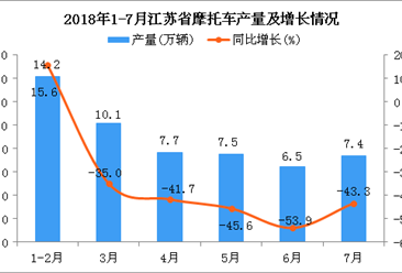 中商情报网讯:据中商产业研究院数据库显示,2018年3-6月江苏省摩托车产量逐渐下降,2018年6月江苏省摩托车产量为6.5万辆,同比下降53.9%。2018年7月江苏省摩托车产量回升...【详情】