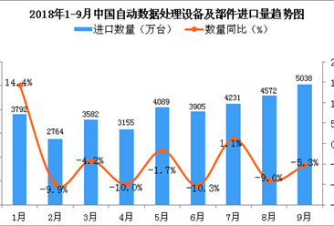 中商情报网讯:据中商产业研究院数据库显示,2018年1-3季度中国自动数据处理设备及部件进口量呈增长趋势,2018年3季度中国自动数据处理设备及部件进口量相比2季度增长24.1...【详情】