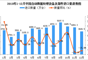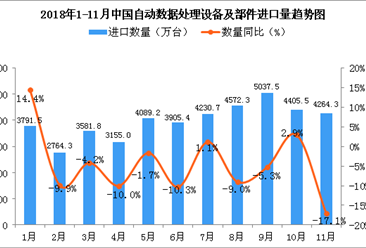 中商情报网讯:据中商产业研究院数据库显示,2018年6-9月中国自动数据处理设备及部件进口量稳步增长,2018年9-11月中国自动数据处理设备及部件进口量呈下降趋势;2018年11...【详情】