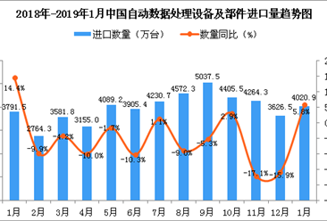 中商情报网讯:据中商产业研究院数据库显示,2018年1-3季度中国自动数据处理设备及部件进口量呈增长趋势,2018年4季度中国自动数据处理设备及部件进口量下降;2019年1月中...【详情】