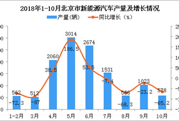 中商情报网讯:据中商产业研究院数据库显示,2018年5-8月北京市新能源汽车产量逐渐下降,下降幅度加大;2018年9月北京市新能源汽车产量有所增长,2018年10月北京市新能源...【详情】