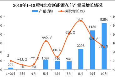 中商情报网讯:据中商产业研究院数据库显示,2018年1-7月河北省新能源汽车产量产量低迷,2018年7-10月河北省新能源汽车产量大幅度增长;2018年10月河北省新能源汽车产量为...【详情】