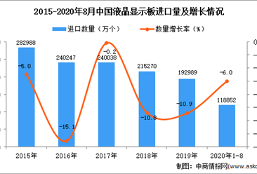 中商情报网讯:据中商产业研究院数据库显示,2020年1-8月中国液晶显示板进口量下降,2020年1-8月中国液晶显示板进口量为118852万个,同比下降6%。 数据来源:中商产业研...【详情】