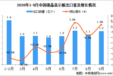 中商情报网讯:据中商产业研究院数据库显示,2020年9月中国液晶显示板出口量增长,2020年9月中国液晶显示板出口量为1.2亿个,同比增长1.8%。 数据来源:中商产业研究院...【详情】