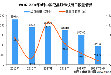 中商情报网讯:据中商产业研究院数据库显示,2020年1-9月中国液晶显示板出口量下降,2020年1-9月中国液晶显示板出口量为93144万个,同比下降18%。 数据来源:中商产业研...【详情】