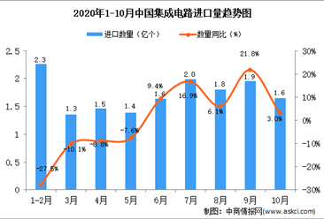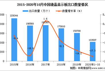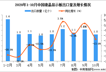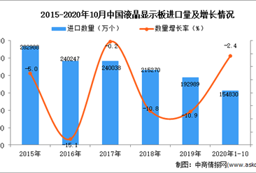 中商情报网讯:据中商产业研究院数据库显示,2020年1-10月中国液晶显示板进口量上升,2020年1-10月中国液晶显示板进口量为154830万个,同比下降2.4%。 数据来源:中商产...【详情】