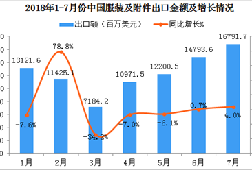 中商情报网讯:据中商产业研究院数据库显示,2018年4-5月全国皮革服装产量有小幅度下降,2018年6-7月全国皮革服装产量回升;2018年7月全国皮革服装产量为794.1万件,同比...【详情】