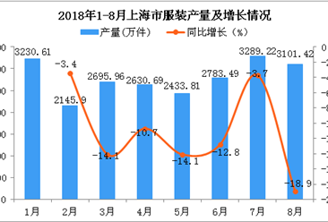 中商情报网讯:据中商产业研究院数据库显示,2018年3-5月上海市服装产量呈下降趋势,2018年5月上海市服装产量为2433.81万件,同比下降14.1%。2018年6-7月上海市服装产量有...【详情】