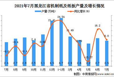 中商情报网讯:据中商产业研究院数据库显示,2021年7月黑龙江机制纸及纸板2.5万吨,同比上升6%。 数据来源:中商产业研究院数据库 2021年7月黑龙江机制纸及纸板增长情况...【详情】