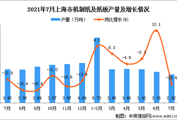 中商情报网讯:据中商产业研究院数据库显示,2021年7月上海市机制纸及纸板2.92万吨,同比下降15.4%。 数据来源:中商产业研究院数据库 2021年7月上海市机制纸及纸板增长...【详情】