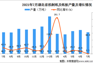 中商情报网讯:据中商产业研究院数据库显示,2021年7月湖北省机制纸及纸板46.8万吨,同比增长0.3%。 数据来源:中商产业研究院数据库 2021年7月湖北省机制纸及纸板增长...【详情】