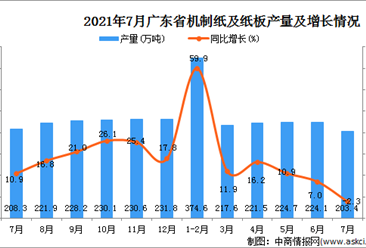 中商情报网讯:据中商产业研究院数据库显示,2021年7月广东省机制纸及纸板203.4万吨,同比下降2.3%。 数据来源:中商产业研究院数据库 2021年7月广东省机制纸及纸板增长...【详情】