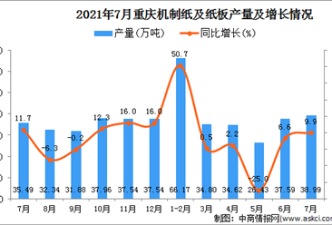 中商情报网讯:据中商产业研究院数据库显示,2021年7月重庆市机制纸及纸板38.99万吨,同比增长9.9%。 数据来源:中商产业研究院数据库 2021年7月重庆市机制纸及纸板增长...【详情】