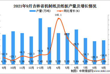中商情报网讯:据中商产业研究院数据库显示,2021年9月吉林省机制纸及纸板3.89万吨,同比下降18.6%。 数据来源:中商产业研究院数据库 2021年9月吉林省机制纸及纸板增长...【详情】