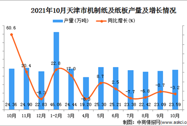 中商情报网讯:据中商产业研究院数据库显示,2021年10月天津市机制纸及纸板23.59万吨,同比下降3.2%。 数据来源:中商产业研究院数据库 2021年10月天津市机制纸及纸板增...【详情】