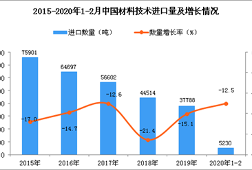 中商情报网讯:据中商产业研究院数据库显示,2020年1-2月中国材料技术进口量有所下降,2020年1-2月中国材料技术进口量为5230吨,同比下降12.5%。 数据来源:中商产业研...【详情】
