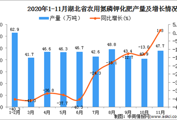 中商情报网讯:据中商产业研究院数据库显示,2020年11月湖北省农用氮磷钾化肥产量为47.7万吨,同比增长1.3%。 数据来源:中商产业研究院数据库 2020年11月湖北省农用氮...【详情】
