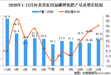 中商情报网讯:据中商产业研究院数据库显示,2020年12月河北省农用氮磷钾化肥产量为18.23万吨,同比增长28.29%。 数据来源:中商产业研究院数据库 2020年12月河北省农用...【详情】