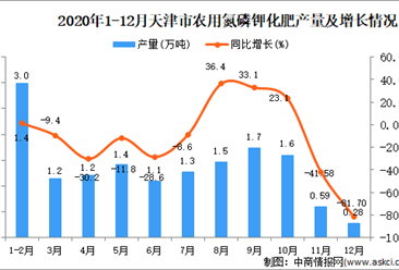 中商情报网讯:据中商产业研究院数据库显示,2020年12月天津市农用氮磷钾化肥产量为0.28万吨,同比下降78.13%。 数据来源:中商产业研究院数据库 2020年12月天津市农用氮...【详情】