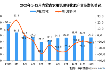 中商情报网讯:据中商产业研究院数据库显示,2020年12月内蒙古农用氮磷钾化肥产量为36.3万吨,同比下降11.3%。 数据来源:中商产业研究院数据库 2020年12月内蒙古农用氮...【详情】