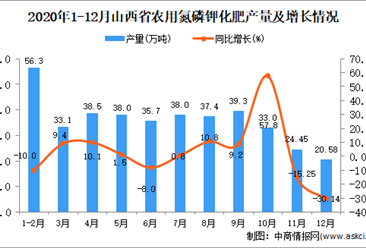 中商情报网讯:据中商产业研究院数据库显示,2020年12月山西省农用氮磷钾化肥产量为20.58万吨,同比下降30.14%。 数据来源:中商产业研究院数据库 2020年12月山西省农用...【详情】
