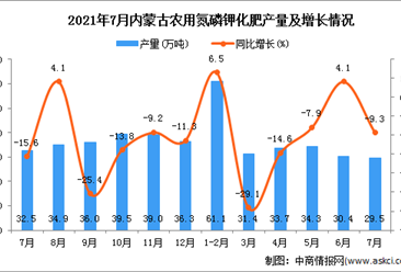 中商情报网讯:据中商产业研究院数据库显示,2021年7月内蒙古农用氮磷钾化肥29.5万吨,同比下降9.3%。 数据来源:中商产业研究院数据库 2021年7月内蒙古农用氮磷钾化肥...【详情】