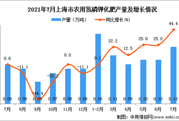 中商情报网讯:据中商产业研究院数据库显示,2021年7月上海市农用氮磷钾化肥0.13万吨,同比下降44.4%。 数据来源:中商产业研究院数据库 2021年7月上海市农用氮磷钾化肥...【详情】