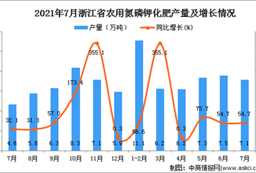 中商情报网讯:据中商产业研究院数据库显示,2021年7月浙江省农用氮磷钾化肥7.1万吨,同比上升54.7%。 数据来源:中商产业研究院数据库 2021年7月浙江省农用氮磷钾化肥...【详情】