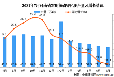 中商情报网讯:据中商产业研究院数据库显示,2021年7月河南省农用氮磷钾化肥26.4万吨,同比下降34.1%。 数据来源:中商产业研究院数据库 2021年7月河南省农用氮磷钾化肥...【详情】