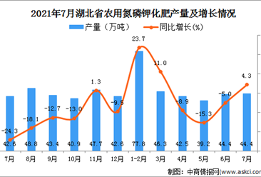 中商情报网讯:据中商产业研究院数据库显示,2021年7月湖北省农用氮磷钾化肥44.4万吨,同比增长4.3%。 数据来源:中商产业研究院数据库 2021年7月湖北省农用氮磷钾化肥...【详情】