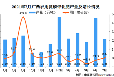 中商情报网讯:据中商产业研究院数据库显示,2021年7月广西壮族自治区农用氮磷钾化肥2.36万吨,同比增长2.6%。 数据来源:中商产业研究院数据库 2021年7月广西壮族自治...【详情】