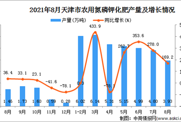 中商情报网讯:据中商产业研究院数据库显示,2021年8月天津市农用氮磷钾化肥3.93万吨,同比增长169.2%。 数据来源:中商产业研究院数据库 2021年8月天津市农用氮磷钾化...【详情】