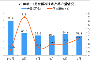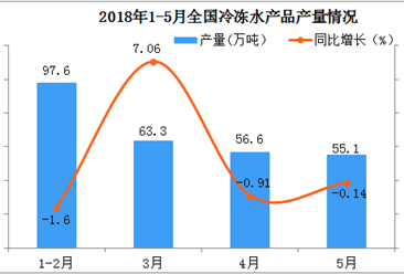 中商情报网讯:根据中商产业研究院数据库,2018年1-5月全国冷冻水产品产量统计显示,2018年5月全国冷冻水产品产量达到55.1万吨,与上年5月相比下降了0.14个百分点,4月份...【详情】