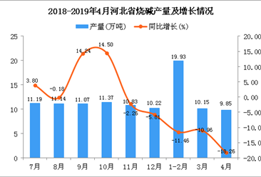 中商情报网讯:据中商产业研究院数据库显示,2018年3-4季度河北省烧碱产量呈小幅度下降,2019年4月河北省烧碱产量为9.85万吨,同比下降18.26%。2019年1-4月河北省烧碱产量...【详情】