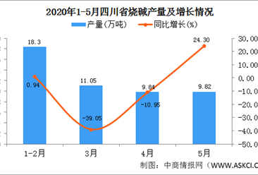 中商情报网讯:据中商产业研究院数据库显示,2020年5月四川省烧碱产量下降,2020年5月四川省烧碱产量为9.82万吨,同比增长24.30%。2020年1-5月四川省烧碱产量为50.12万吨...【详情】