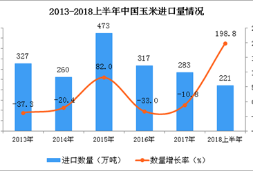 中商情报网讯:据中商产业研究院数据库显示,2015-2017年我国玉米的进口数量逐渐下降,2018年上半年我国玉米进口量出现回暖;2018年上半年我国玉米进口量为221万吨,同比...【详情】