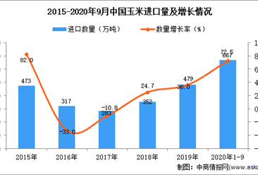 中商情报网讯:据中商产业研究院数据库显示,2020年1-9月中国玉米进口量上升,2020年1-9月中国玉米进口量为667万吨,同比增长72.5%。 数据来源:中商产业研究院数据库 ...【详情】
